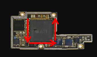 底部填充膠因毛細(xì)管虹吸作用按箭頭方向自動(dòng)填充。通常情況下常用“一”型和“L”型,和“U”型作業(yè),通過(guò)表面觀察,可以看到會(huì)形成底部填充初步效果。